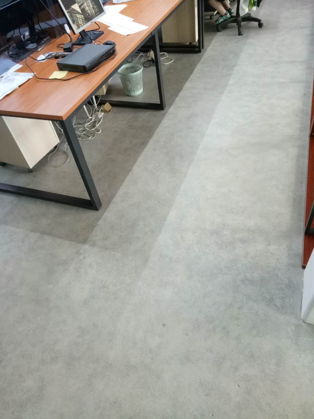 • 施麥貝仿清水混凝土漆,主要原材料為德國進口的礦物質以及硅溶膠和無機色素組成。該產品的防塵性能比較好,地面清潔易清理。耐磨度也特別高,兩輛小汽車來回開50遍,表面沒有任何的起皮開裂情況。其中不含任何的化學有機原料,沒有環境方面的不良影響。